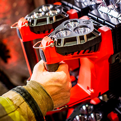 Lightweight and portable, the Vulcan® 180 is designed to burn brighter and run longer making it an essential firefighting and utility tool. This rechargeable, waterproof lantern has a 180-degree tilting head which allows you to direct the light where you need it. Three LEDs bring you extreme brightness along with two blue taillight LEDs for visibility in thick smoke.